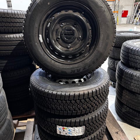 Bridgestone dæk med fælge vintersnefnug indeni tre bjergtoppe (3PMSF). godkendt , størrelse 195/65 R15, sort stålmateriale. Dækkene er designet til personbiler og egner sig til almindelig vejbrug.