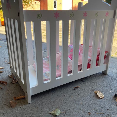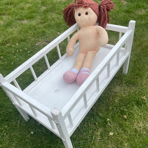 Fin hvid dukke seng, så god som ny. Samlebeslag og skruer medfølger