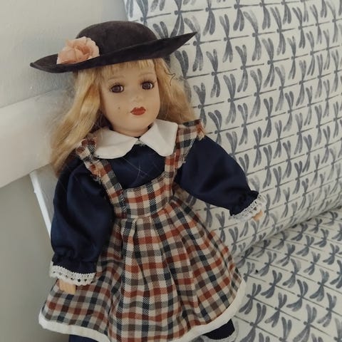 Vintage porcelænsdukke med blød krop