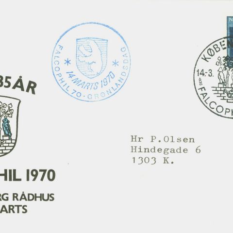 Breve og kort med mange fine stempler og dekorative kuverter, fx NOFA 87, Frimærkets Dag (Hillerød, Ålborg, Ålborg, Åbenrå), Dania 68, Haslev Filatelistklub, Rønne Byjubilæum, Frimærkeklubben Damsø 1941, Dafila Ringsted 1977, KPK 1977, Øpost Ringe 1975, Ørestads-foreningernes Frimærkeudstilling 1975, Landsgildeting Silkeborg 1975, Øpex 1975, Vejle Philatelistklub 1975, Virum Jubilæumudstilling 1974 med særtryk af Holte Landpost-mærke osv.