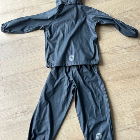 Wheat regntøj str 116, kun brugt et par gange så kunne han ikke passe det mere. Man kan slet ikke se at det har været brugt