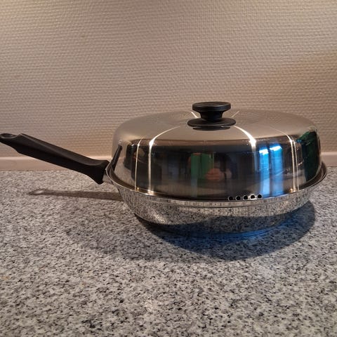 1 stk. sauterpande med låg. 2 liter og 22 cm i diameter: 375 kr.