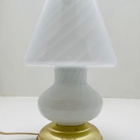 Lampen er håndlavet i Italien i 1970'erne og er i mundblæst Murano glas.
