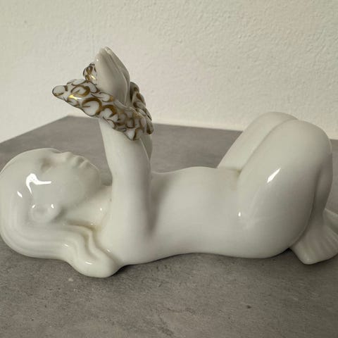Havpige nr 2314 , B&G, Bing & Grøndahl B&G liggende, hvid 12 cm
