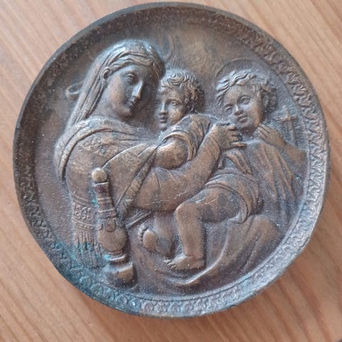 Medaljoner med klassiske motiver, Gamle ovale medaljoner til at hænge på væggen, Klassiske "græske" motiver, tynde messingrammer, måler 13x9,5 cm. Liebhaveri! Pris for tre: