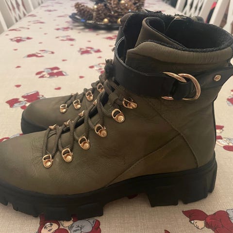 Virkelig flotte og stilfulde vinterstøvler med snører, lunt for og fin pelskant i faux fur.
