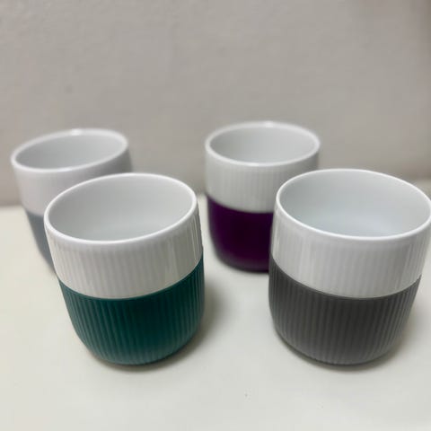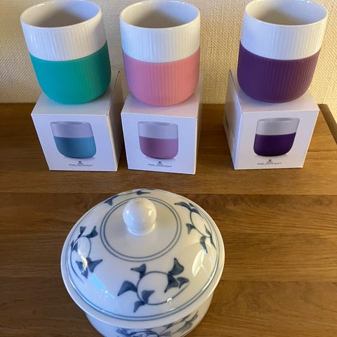 4 stk. Grå, gul, laks?, orange. Næsten aldrig brugt. Ingen skår. Prisen er pr. stk. Giver rabat ved køb af flere.