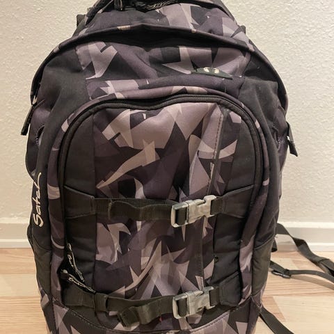 Meget flot og velholdt skoletaske fra Satch, og modellen Pink Bermuda. Der er 3 store rum og plads til computer.