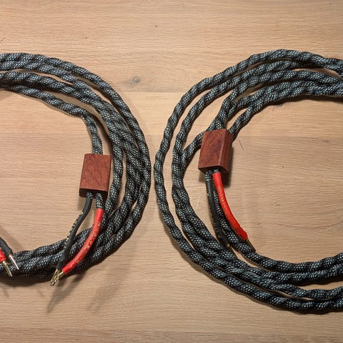 Jeg har 2 sæt diy højttalerkabler til salg. Længde lidt over 3 m.