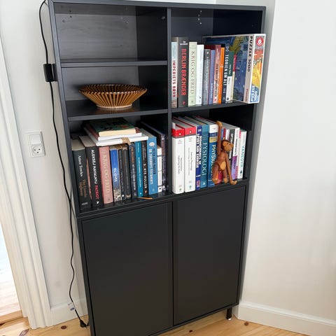 Der følger 6 hyldeplader med - nogle ret medtaget men brugbare.