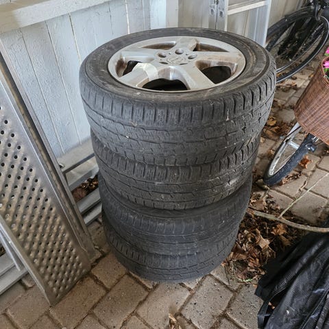 Som det kan ses på billederne, er der også fire gamle fælge med kapsler som dækkene kan monteres på, de kan følge med for 500 ekstra hvis det har interesse