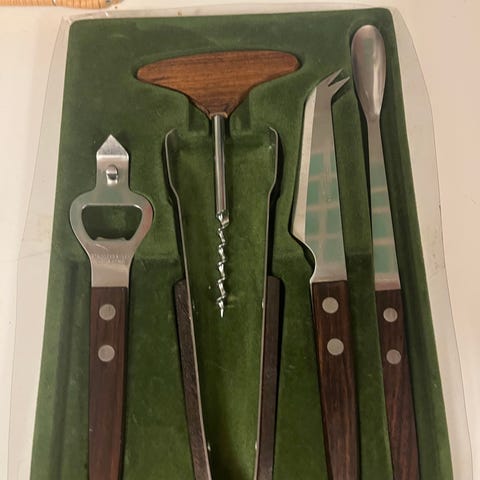 Bar udført i mahogni-finér og stål. Fodstøtte og glasplade (hærdet) monteret på den éne side sammen. Har været anvendt i et køkken, men kan sagtens bruges i andre sammenhænge - f.eks reception.
