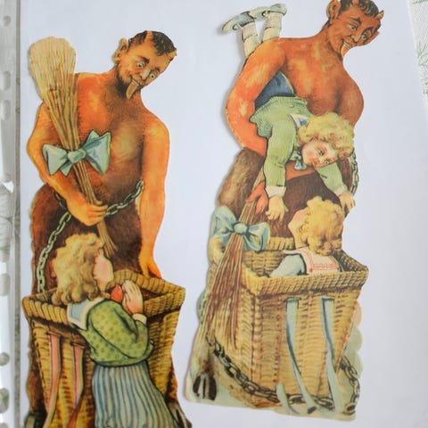 Div gl / antik figur af krampus og djævle skåret i træ eller gips købes af samler