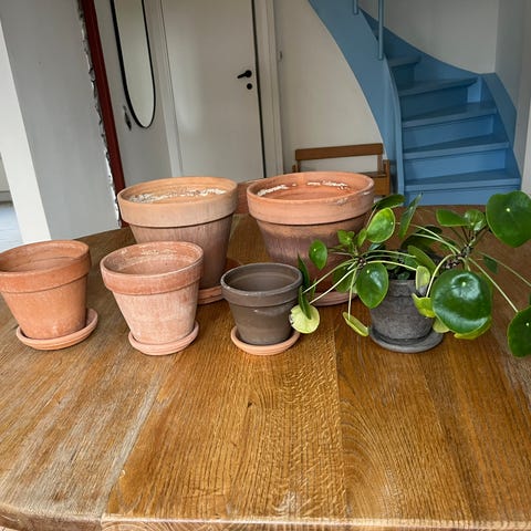 Terracotta pokal, terracotta lysestage, terracotta krukke, terracotta jardiniere