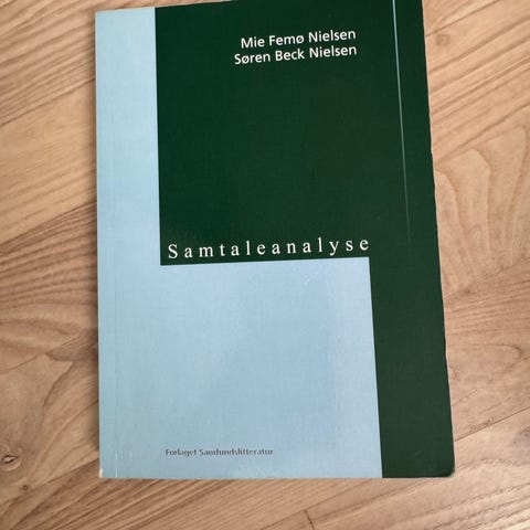 Mie Femø Nielsen og Søren Beck Nielsen Samtaleanalyse. Bogen omhandler samtaleanalyse inden for kommunikation og sprog, og er udgivet af Forlaget Samfundslitteratur. Teksten er på dansk og bogen anvendes til studier inden for sprog og ordbøger.