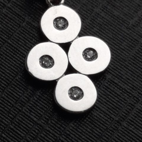 Sølvvedhæng med zirkon, størrelse ca. 1 cm, pris 200 dk