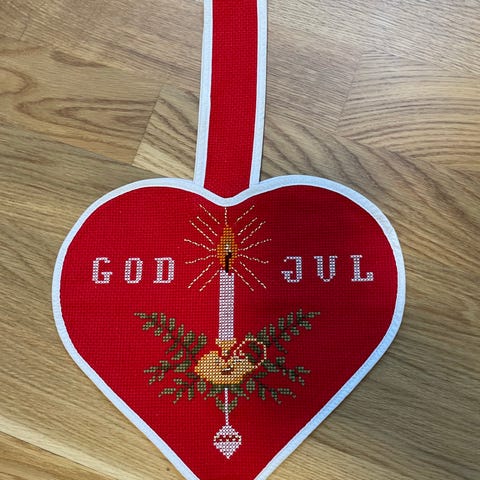 Hånd broderet med met op hæng. Mål 27 x 32 cm Sælges billigt.