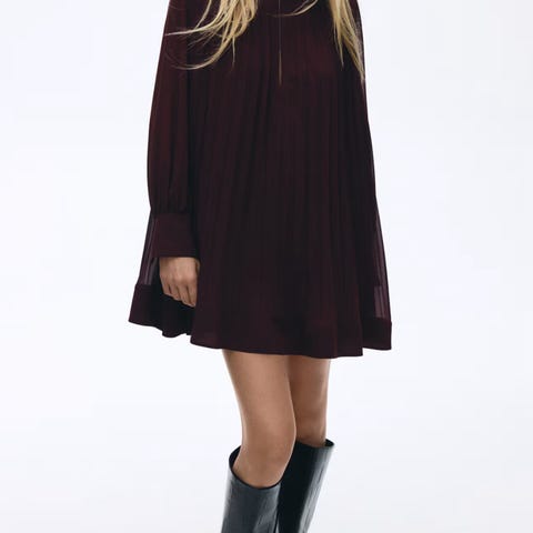 Kort kjole i pailletbesat jersey med rund halsudskæring og lange raglanærmer med vidde. Skjult lynlås og hægtelukning i ryggen. Foret med jersey.