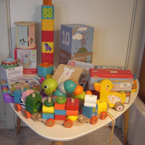 babylegetøj brugt af 1 barn hos bedsteforældre.