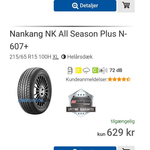 2 stk nye Nankang n607 helårsdæk str. 175/55×15".