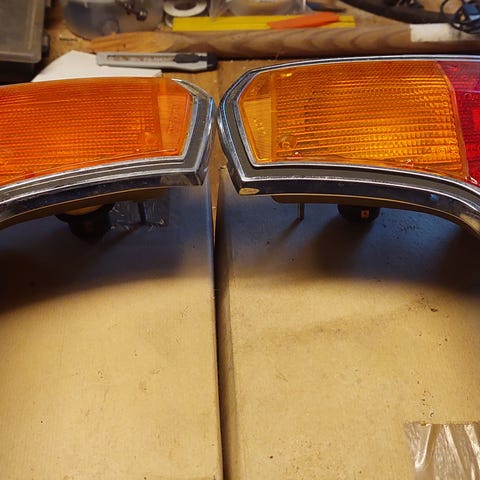Sjælden Lucas Original L541 Baklygte, BRUGT. Linse, holder, montering, pære stadig tilgængelig. God stand.