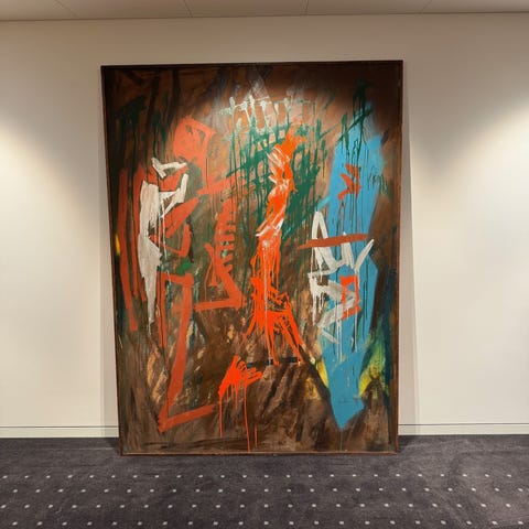 Der er en mærkat bag på maleriet fra Bruun Rasmussen, hvor det var vurderet til 5000 kr.