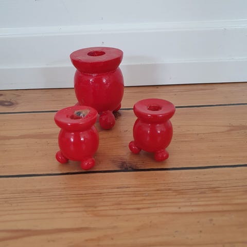 3 røde træ julestager, svenske fra 1970’erne med kuglepen fin stand