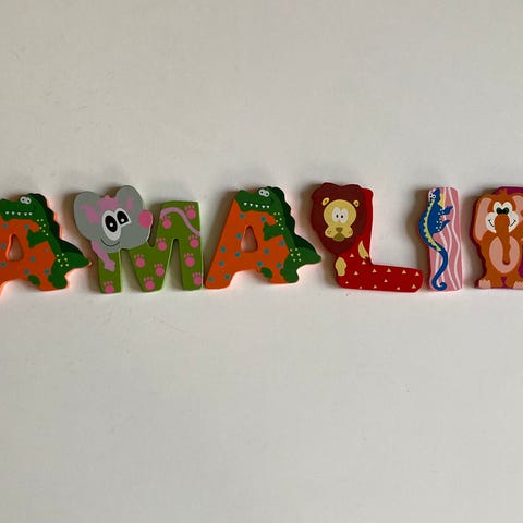 Bogstaver i træ, 9cm høje. Mangler desværre E, G, R & S