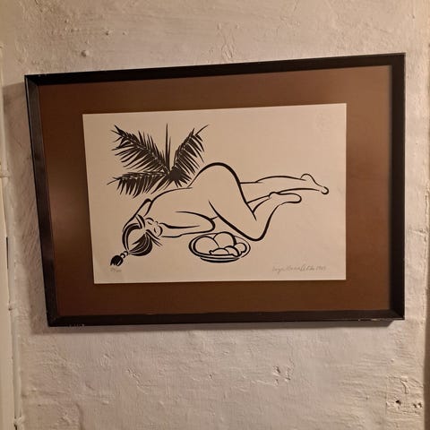 Litografisk farvetryk i glas og ramme, signeret, 64 gange 43 cm
