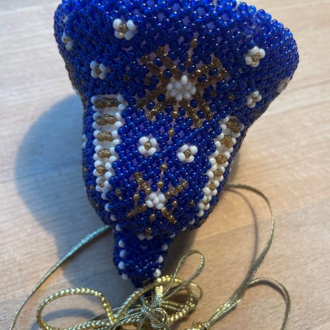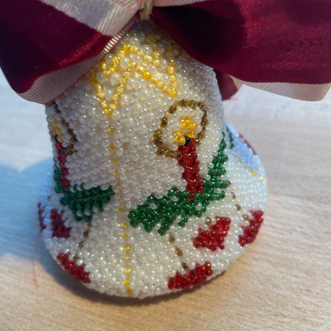 Grønlandske perler - klokke fin og dekorativ. Guld, grøn og hvid.