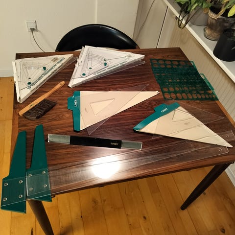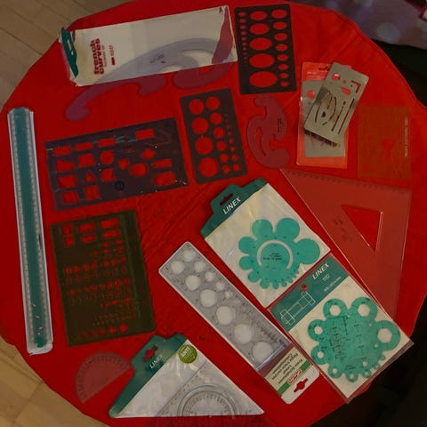 Vintage tegneskabeloner, diverse varianter - grøn plast /transparent akryl.