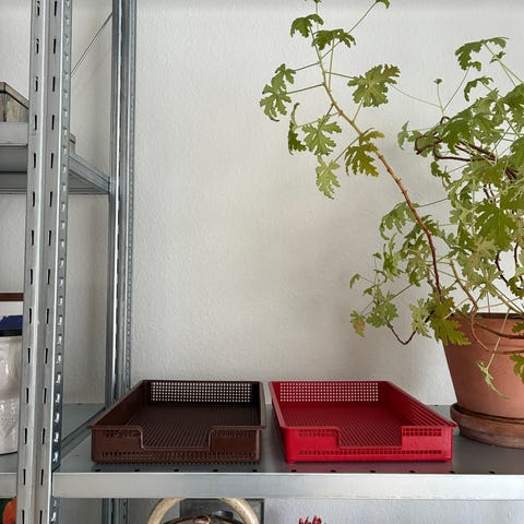 Pink gennemsigtig plastik bakke med håndtag