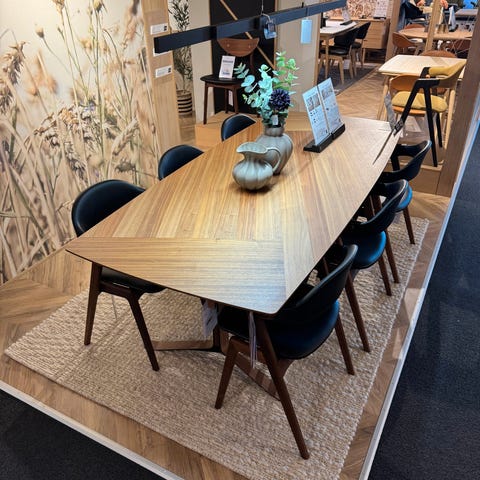 Et stilrent og let design fra PBJ Møbler. Bordet er i lakeret fineret eg, der er nemt at vedligeholde og rengøre i hverdagen. Bordet har en smart opbevaringsboks under bordpladen, hvor der er plads til 2 tillægsplader. Prisen er inklusiv 2 tillægsplader. Der kan forekomme mindre brugsmærker på bordet.