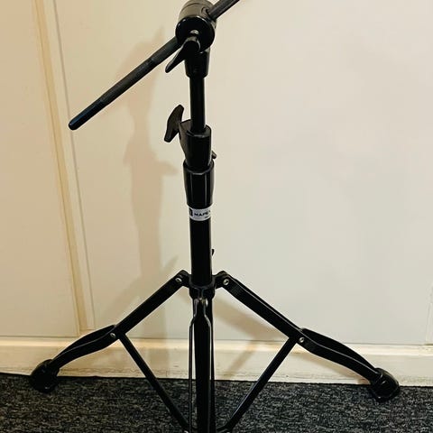 Stabilt dobbeltbenet bækkenstativ med boom som også kan indstilles til et straight stativ (billede 2).
