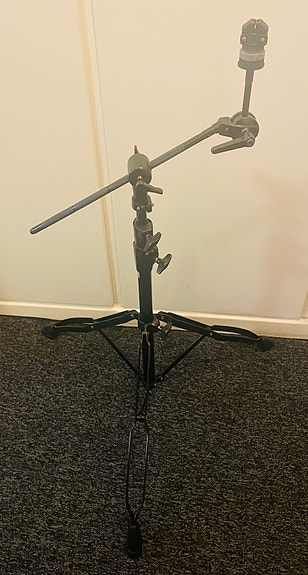 Stabilt dobbeltbenet bækkenstativ med boom som også kan indstilles til et straight stativ (billede 2).