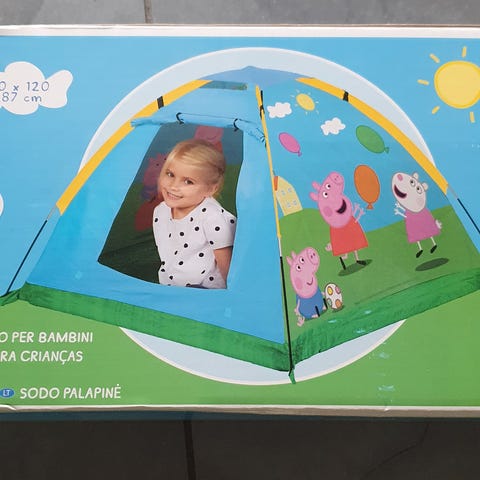 Er ca 1 m x 1 m i bunden i udfoldet stand.
