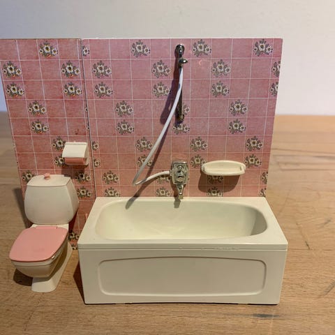 Dukkehus-møbler, badeværelse lundby, brugt Lundby dukkehus badeværelse se billeder