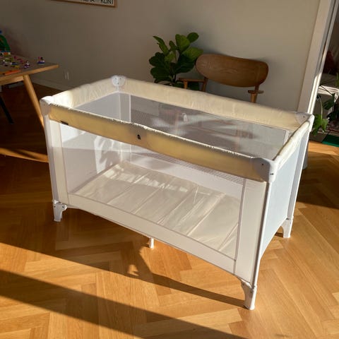Carena Rejseseng er en bærbar børneseng i sort farve, designet til nem transport og brug på farten. Den har et let stel med net på siderne for ventilation og sikkerhed, samt en madras med aftageligt betræk. Sengen er velegnet til børn og kan bruges som en midlertidig soveplads under rejser.