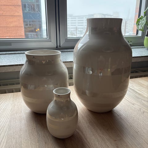 Kähler Omaggio vaser i miniature, 3-pak i farven perlemor. Aldrig brugt, stadig i emballage. Kommer fra røgfrit hjem.