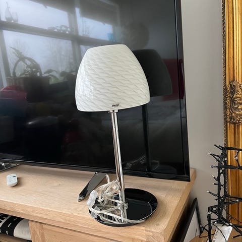 Herstal bordlampe (halogen) med hvid glasskærm, højde 44 cm