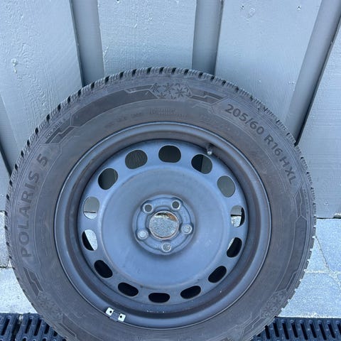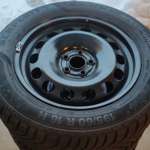 Seat Dæk med fælge med dimensionerne205/60 R16. Dækkene er vinterdæk monteret på stålfælge med sort finish. Passer til biler med 5-huls montering.