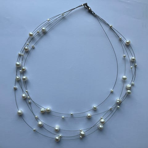 Træ Perlekæde Halskæde lavet af beige træperler. Kæden består af runde perler i varierende størrelser, sammenkoblet med små mellemperler. Kæden har en lukning, der gør den let at tage af og på. Velegnet som tilbehør til forskellige outfits.
