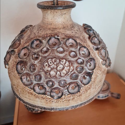 Gammeldags keramik kædeophængt lampe.