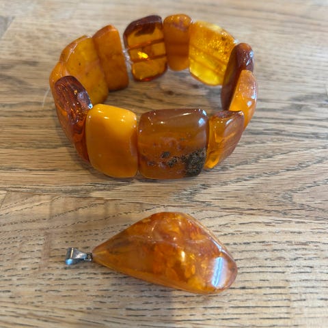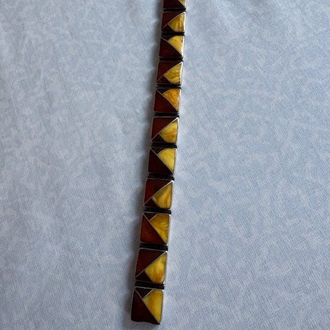 Armlænke, rav, Designsmykker.dk, Helt ubrugt armlænke fra designsmykker.dk: sterling sølv & ægte rav. Ravmosaik lagt ned i sølvet