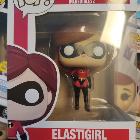 Funko POP! samling bestående af Elastigirl 403, Lloyd Christmas 1041, Beatrix Kiddo 281 og Frank 571.