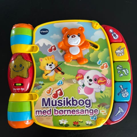 Fisher-Price Musikbog med børnesange legetøj. Farverig musikbog med integrerede knapper til afspilning af børnesange. Indeholder flere sider med illustrationer og tekst til sangene. Designet til små børn med fokus på musikalsk og visuel stimulering.