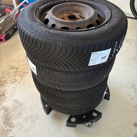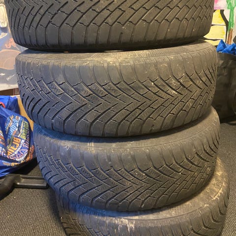 Vinterdæk, Continental, med ca 4 mm spor tilbage, så de har et par vintre i sig endnu.