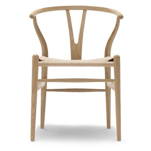 Y-stole i sort bøgetræ med naturflet af Hans J. Wegner. Stolene fremstår pæne, men der er nogle ridser på armlænene. Prisen er samlet.