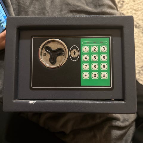 Rockfort S-50EB elektronisk pengeskab i sort farve. Pengeskabet har en digital kodepanel til sikker adgang og en drejeknap til manuel åbning. Indvendigt er der to hylder, der giver mulighed for opbevaring af forskellige genstande. Skabet er fremstillet i robust materiale og har en kompakt størrelse, der passer til opbevaring af værdigenstande i hjemmet eller på kontoret.
