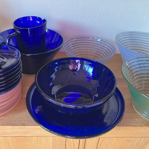 Blå glastallerkener i serien BROKSØ